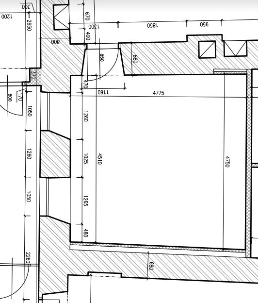 Z úvodního obrázku je vidět půdorys sekničky. Co ale vidět není jsou krásné klenby, které však znemožňují umístění vysokého nábytku tam, kam si člověk zrovna vzpomene.