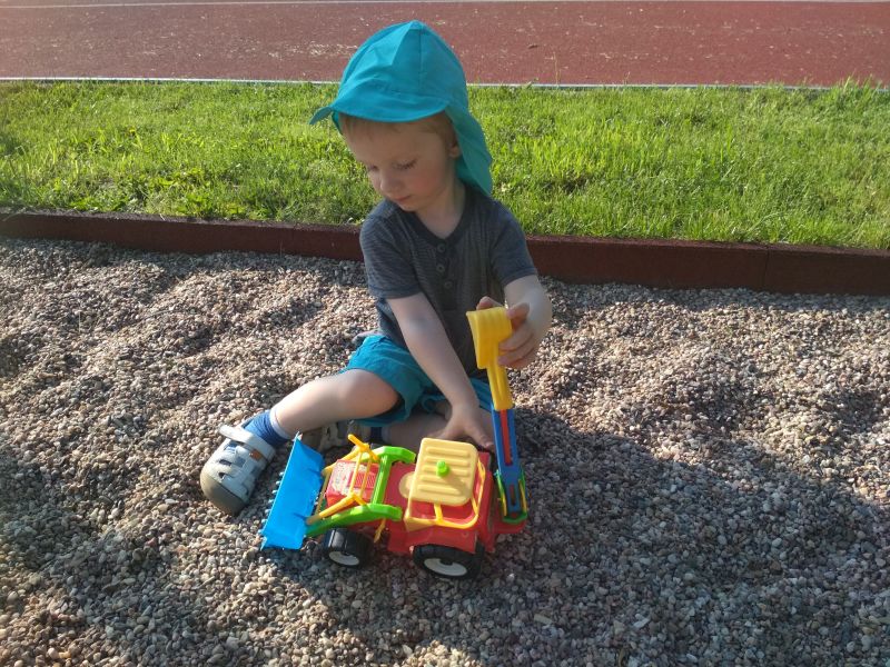 I u nás platí, že to, co používají rodiče, je mnohem lepší a zajímavější než to, co jsem dostal na hraní. Na co mít vlastní smetáček a lopatku, když ten dospělácký je lepší! Totéž platí i o lopatách, kolečkách, autech a jiných "dospěláckých věcech". Třeba i o kolíčkách na prádlo.