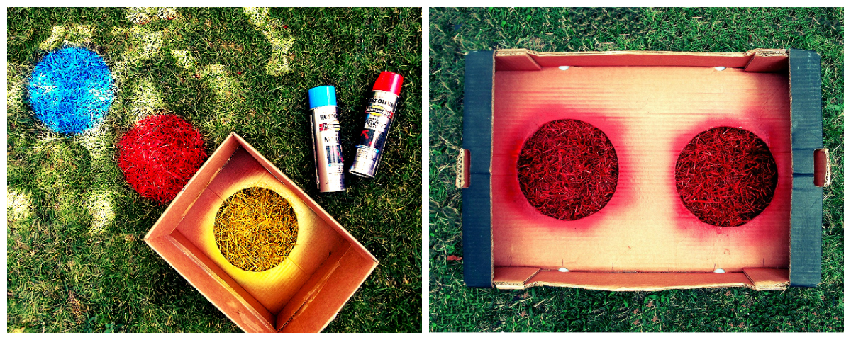Každopádně - také do výroby venkovního hřiště můžete zapojit své děti. Když jim vyměříte, kam přesně mají umístit šablonu, budou sprejem stříkat o sto šest a ještě se možná poperou o to, kdo jakou barvou. Je opravdu lepší vyříznout díry do krabice a ne jen na arch kartonu, protože stěny krabice vás i vaše ratolesti ochrání před případnými úniky barvy do stran.