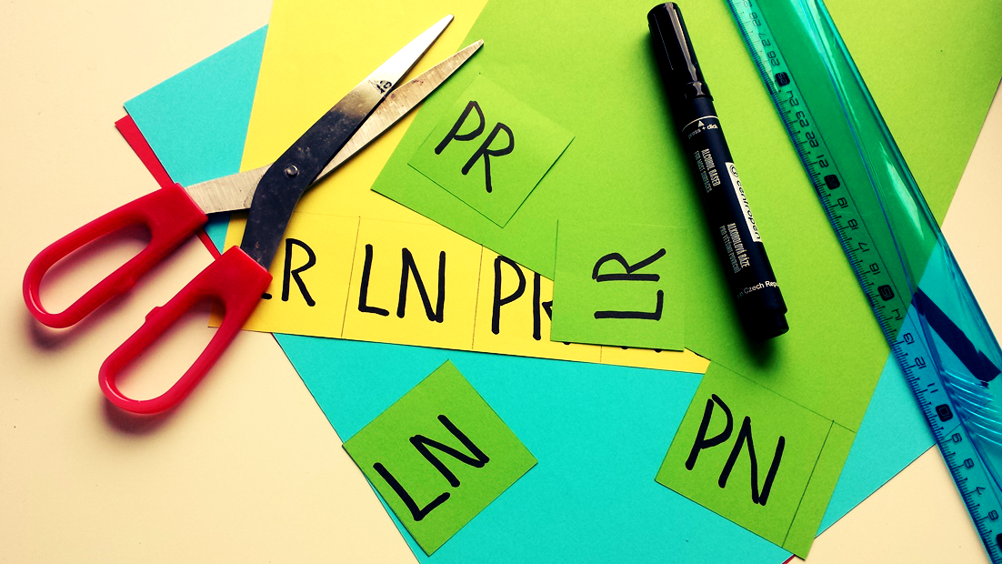 Z mého pohledu nejjednodušší losovací zařízení, jejichž výrobu hravě zvládnou i děti. V základní verzi potřebujeme 4 kartičky dané barvy s nápisy LN (levá noha), PN (pravá noha), LR (levá ruka), PR (pravá ruka) - dohromady tedy 16 kartiček, velikost 5x5 cm naprosto stačí. Nechám na vás, jestli zvolíte barevné papíry (pak v rámci trvanlivosti doporučuji minimálně podlepit, lépe zalaminovat) nebo bílý tvrdý papír a barevné fixy.